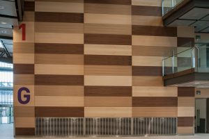 Our scope included, timber, GRP and metal doors and windows installed to meet medical air leakage criteria. Full washroom fit out, wall protection, timber and glass atrium cladding and reception desks.
